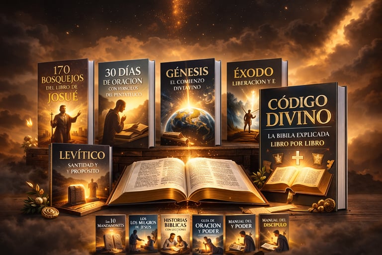 Código Divino es un sistema completo de estudio bíblico que te guía paso a paso a través de toda la historia de la Biblia, con bosquejos visuales, explicaciones claras y enseñanzas prácticas que puedes aplicar en tu vida diaria.